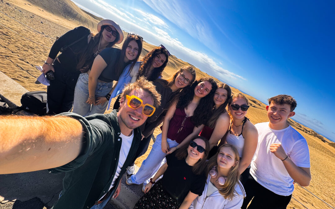 Das vielseitige Programm auf Gran Canaria umfasste interkulturelle Aktivitäten wie das Kennenlernen eines kanarischen Tanzes, den Besuch des Roque Nublo mit Blick auf den Teide, eine Exkursion nach Las Palmas sowie einen Workshop zur Gestaltung traditioneller Karnevalsmasken. Ergänzt wurde der Aufenthalt durch Besuche touristischer Regionen wie Maspalomas mit seinen bekannten Dünenlandschaften.